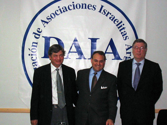 Dr. Salomon Chiquiar Rabinovich and Dr. Luis Ruvira with Dr. Edgardo Waissbein, Secretary General of DAIA (Delegation of Argentine Jewish Associations). | |