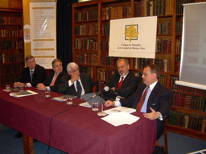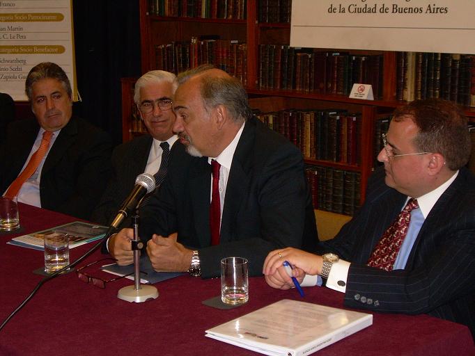 From left to right, , Dr. Esteban Carcavallo (president of the Commission), Dr. Enrique V. del Carril (president of the Bar Association), Dr. Eduardo Viñales (Funes de Rioja & Asociados Law firm) and Dr. Salomon Chiquiar Rabinovich (Seyfarth Shaw LLP). | |