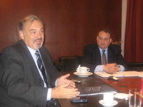 El Dr. Chiquiar Rabinovich, as president of the New England — Latin America Business Council (NELABC), and Dr. Luis Ruvira, with the executive director of the Argentine Industrial Union (UIA), Luis González Esteves. | | |