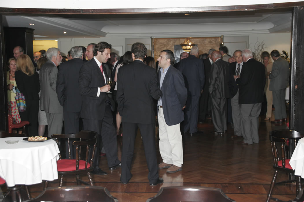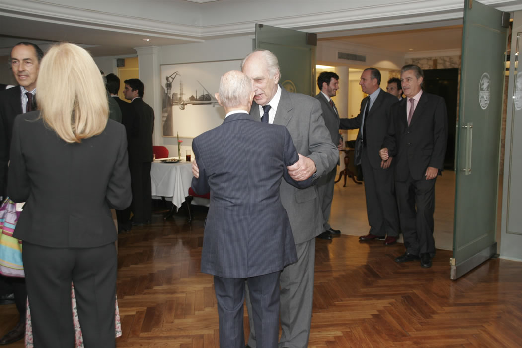 Arrival to the event: in first plane, and from left to right, Ambassador Fernando Petrella, Mrs. Tedín and Rodolfo Martinez next to Dr. De las Carreras. In the door, Eduardo Diez, Colonel Roberto Ferrer and the national deputy Federico Storani. | |