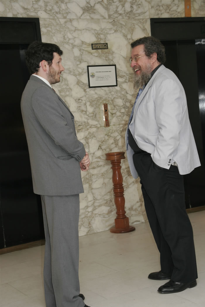 Eduardo Diez, Executive director of the Dialogue, exchanging "peripheral" opinions with Dr. Carlos Escudé. | | |