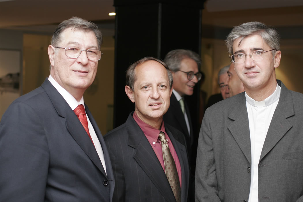 The Ambassador Lino Gutiérrez between Luis Ruvira and the father Guillermo Marcó, spokesman of the archbishop of Buenos Aires, cardinal Jorge Bergoglio. | |